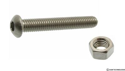 Vis inox MB M4 x 16 + écrou inox M4 pour instrument