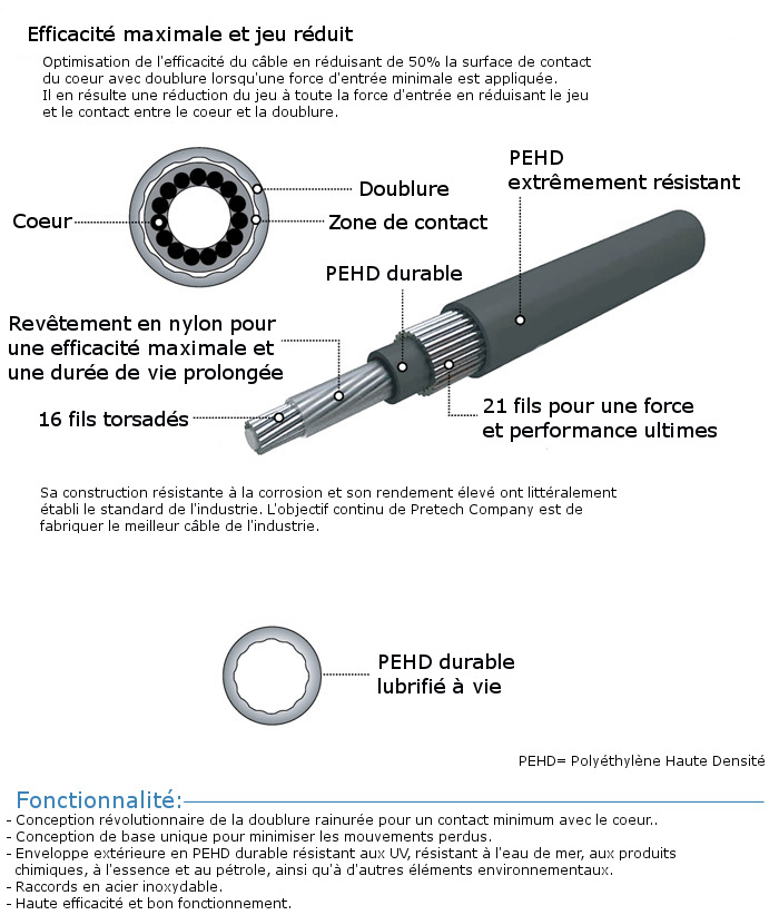 Câble Téléflex série 33C d'une longueur de 1,50 m. Symétrique au deux extrémités (AN3). Course de 76 mm. Rayon de courbure 200 mm.