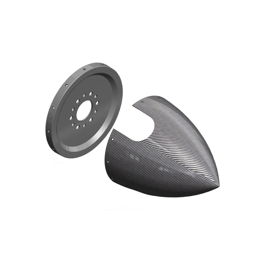 La platine de fixation du cône DUC tripale de diamètre 210 mm est entièrement réalisée en fibres de carbone, avec une épaisseur