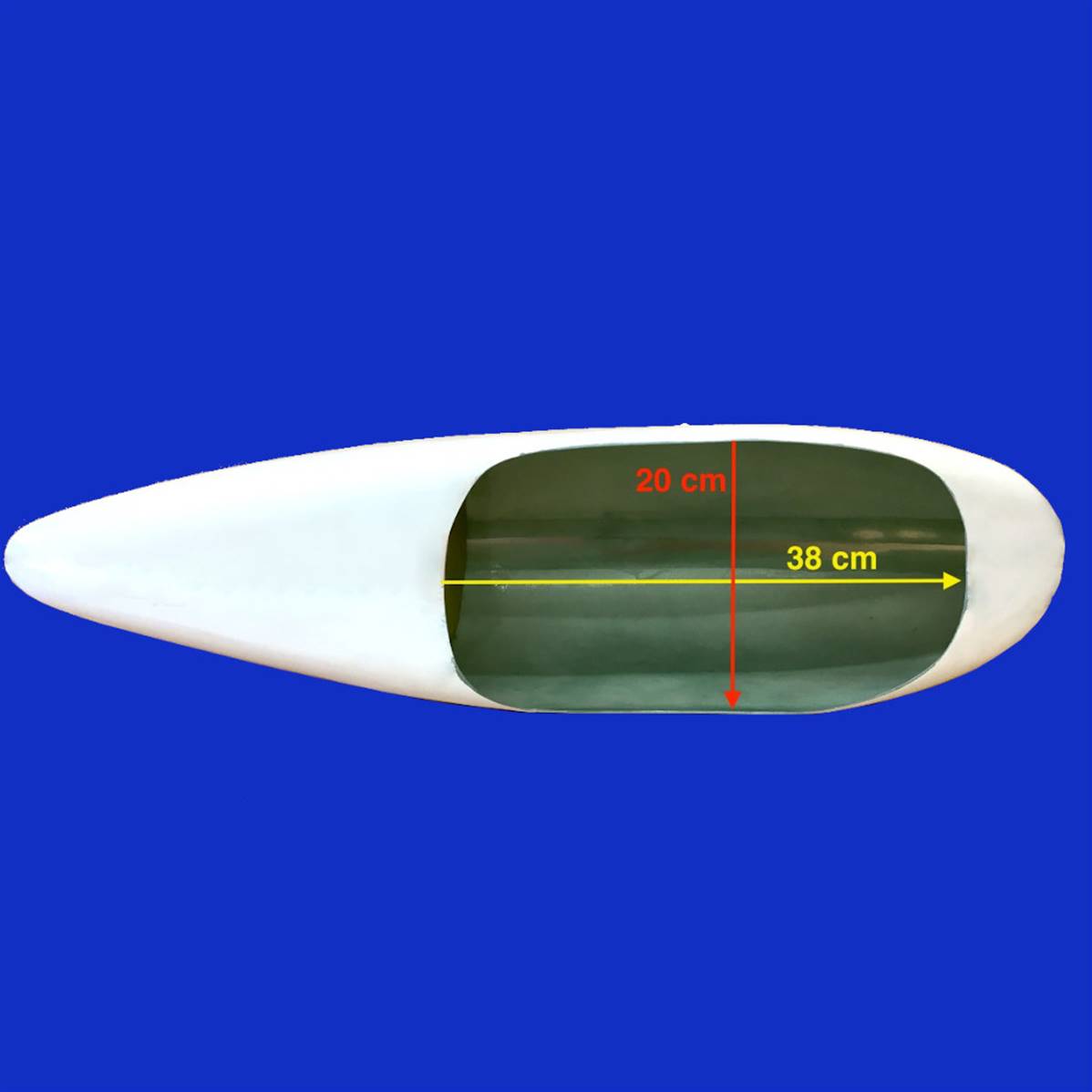 Carénage de roue de 840 mm de long, 190 mm de large et 280 mm de haut.