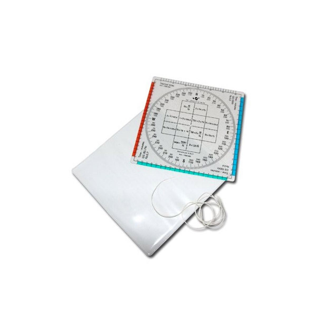Un rapporteur carré (13.5 cm de côté) en plexi souple pour préparer vos vols et plus particulièrement gérer les déroutements.