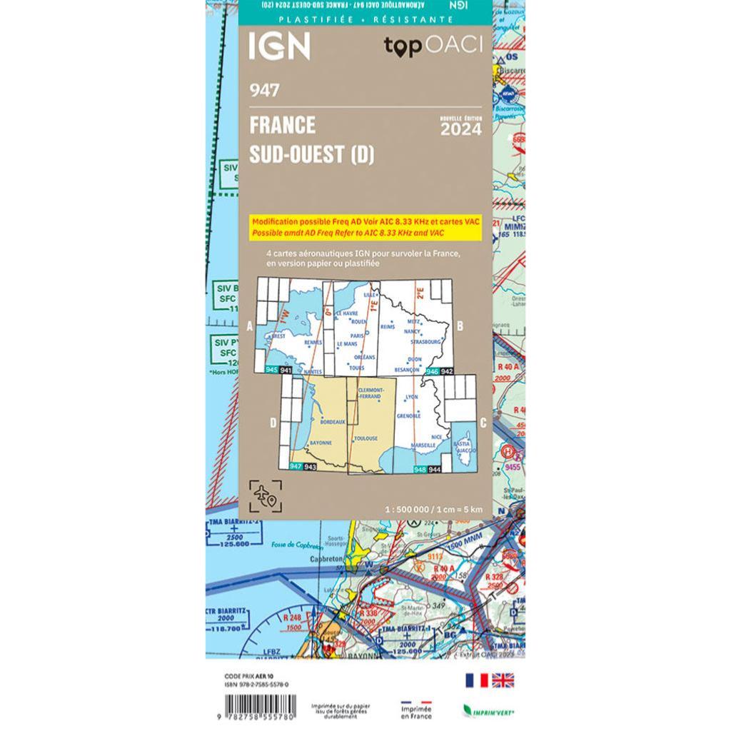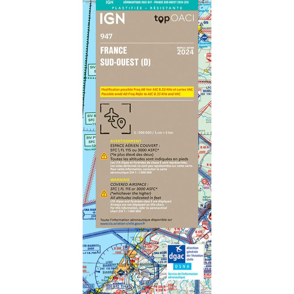Carte OACI Sud Ouest plastifiée 2024