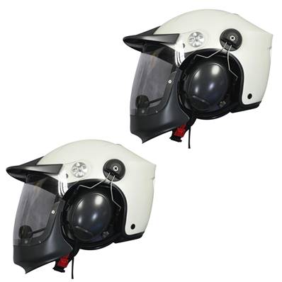 Casque Icaro Rollbar Plus blanc nacré avec double visière et système de verrouillage.