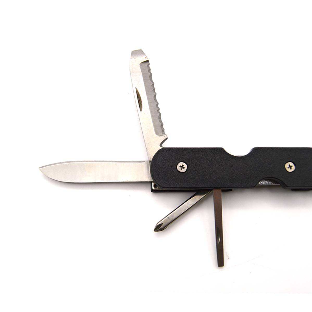 Couteau en acier inoxydable complet avec clé, tournevis cruciforme, tournevis plat, ouvre-bouteille, lame...