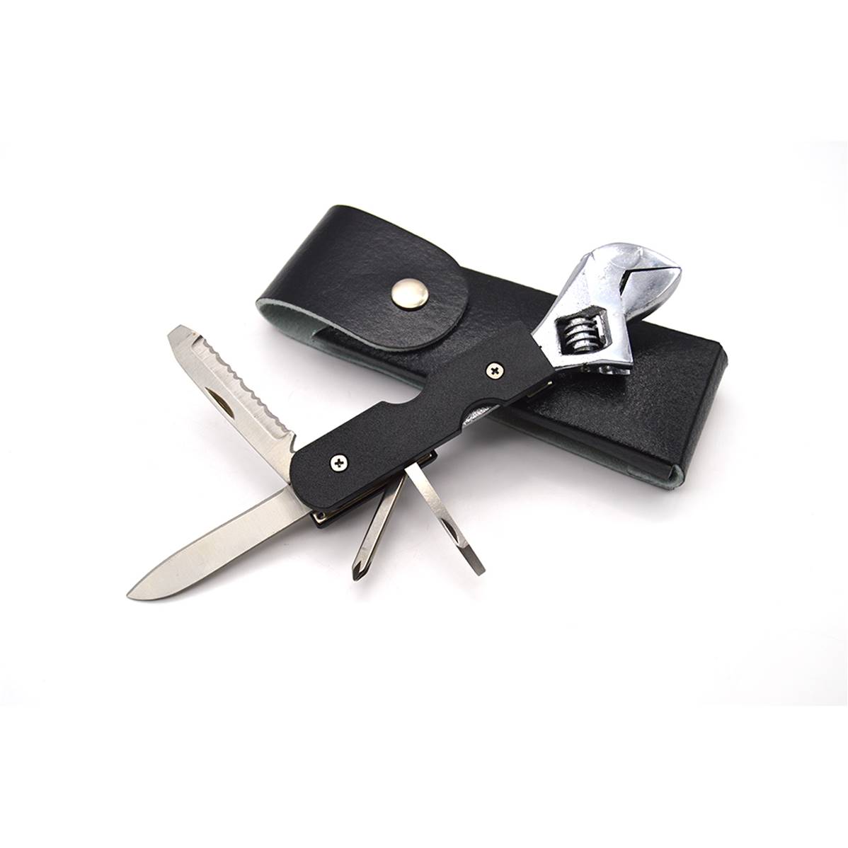Couteau en acier inoxidable complet avec clé, tournevis cruciforme, tournevis plat, ouvre-bouteille, lame...