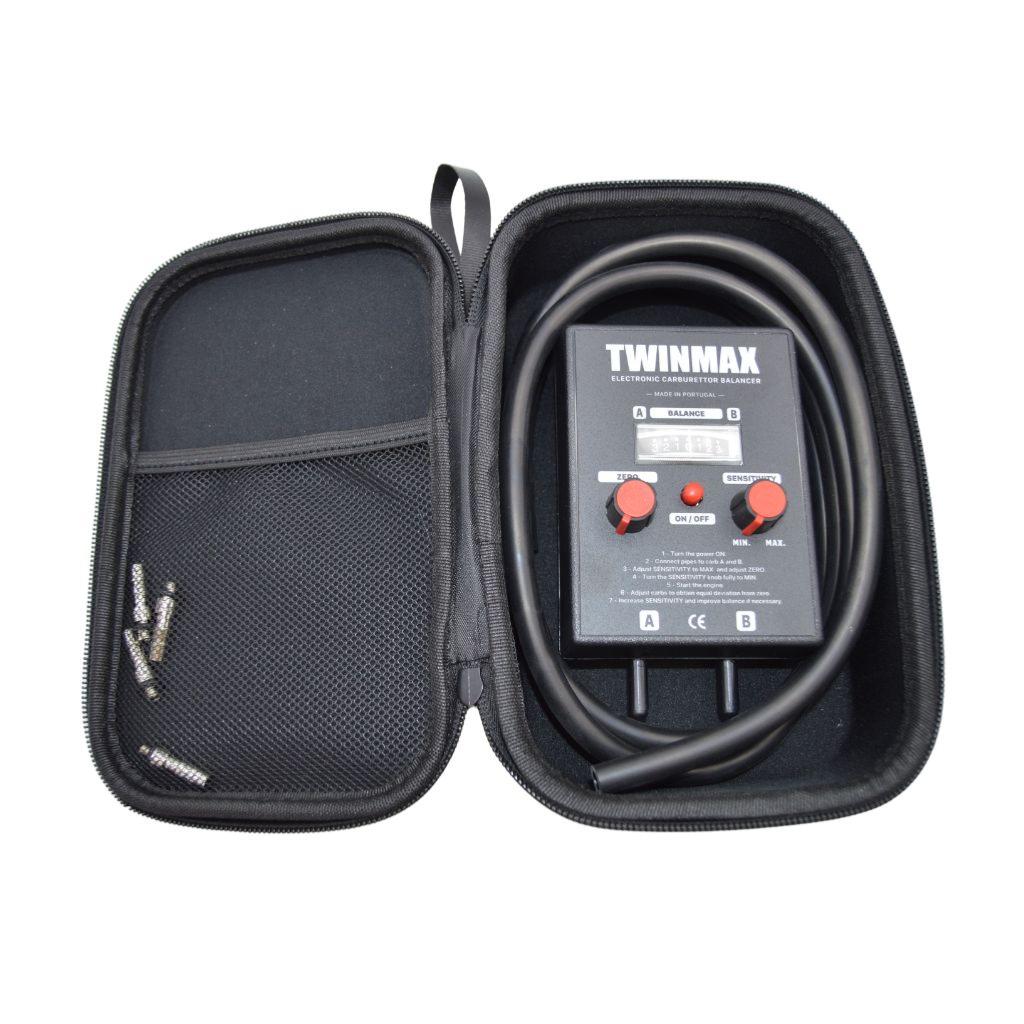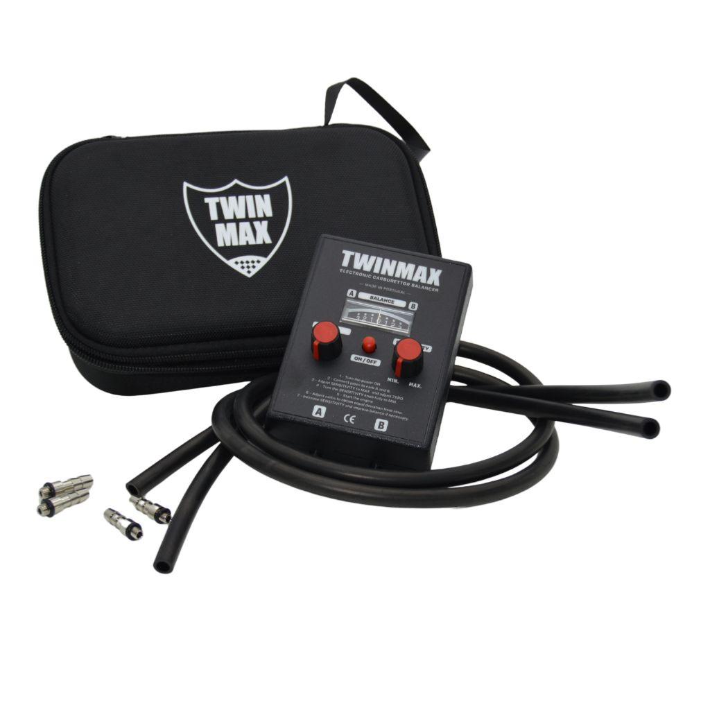Le TwinMax est un appareil électronique qui utilise un capteur de pression d'air à 2 entrées. Un module électronique reçoit les mesures de pression et les interprète en fonction de la sensibilité désirée. Un afficheur indique précisément la différence de pression existant entre les 2 entrées d'air. Il suffit alors de relier les 2 entrées d'air aux pipes d'admission des carburateurs ou du système d'injection afin de constater la différence de pression qui peut exister à tous les régimes.