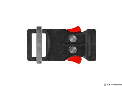 Boucle de sécurité partie femelle pour harnais et sangles. Modèle robuste avec verrouillage à enclenchement et bouton de libération rapide. Idéal pour installations ULM, paramoteur, véhicules légers, sièges et systèmes de retenue. Dimensions : 74 x 50 x 27 mm.
