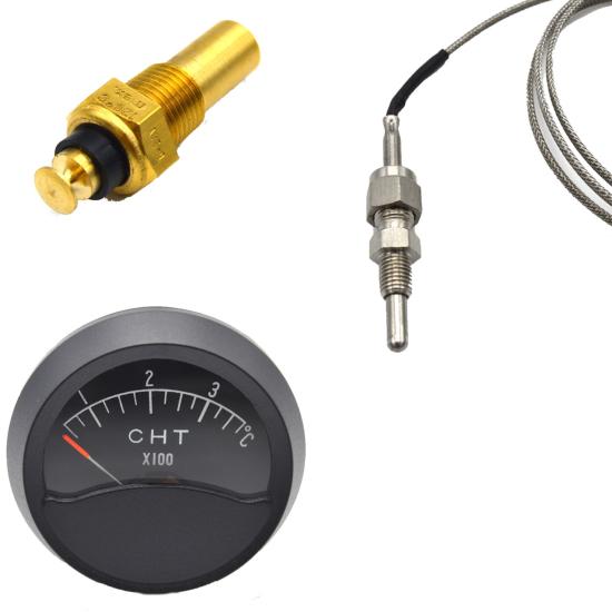 Dans la catégorie température, vous trouverez : température eau + sonde 120° -52mm, sonde température cylindre CHT 12, sonde T° à 150° + alarme 110°, mano température BTP à 120° C°...