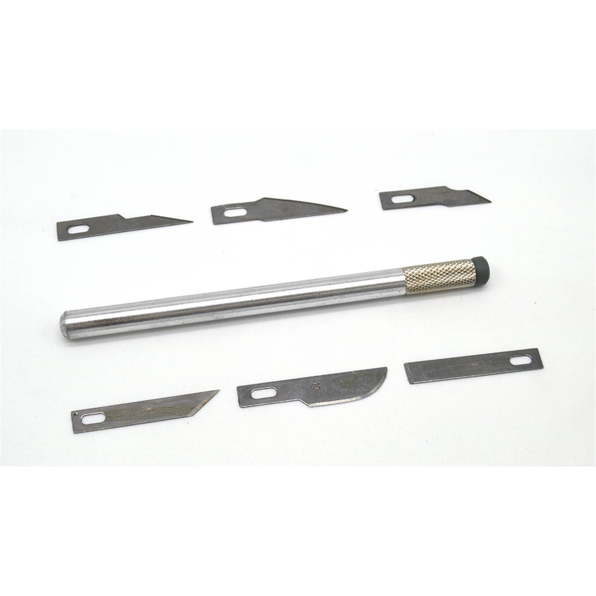 Manche en aluminium de 115 mm + lot de six lames.(carrées, plates, arrondies et en diagonale, toutes interchangeables)