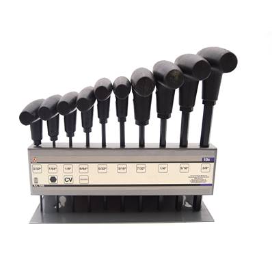 Kit de 10 clés hexagonales US. 3/32 - 7/64 - 1/8 - 6/64 - 5/32 - 3/16 - 7/32 - 1/4 - 5/16 - 3/8. Profil de poussée six pans creux.
