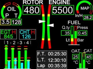 • Compte-tours rotor ou % du régime moteur (Version hélicoptère)
