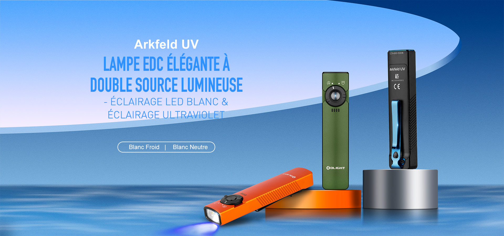 La Olight Arkfeld UV combine un éclairage LED puissant et un mode ultraviolet polyvalent, offrant des fonctionnalités idéales pour un usage quotidien et des applications spécifiques.