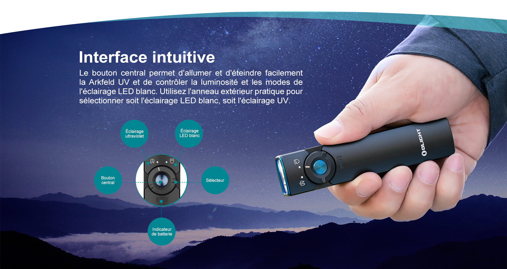 Olight Arkfeld UV - Lampe EDC* Polyvalente avec Éclairage Ultraviolet - Couleur noir