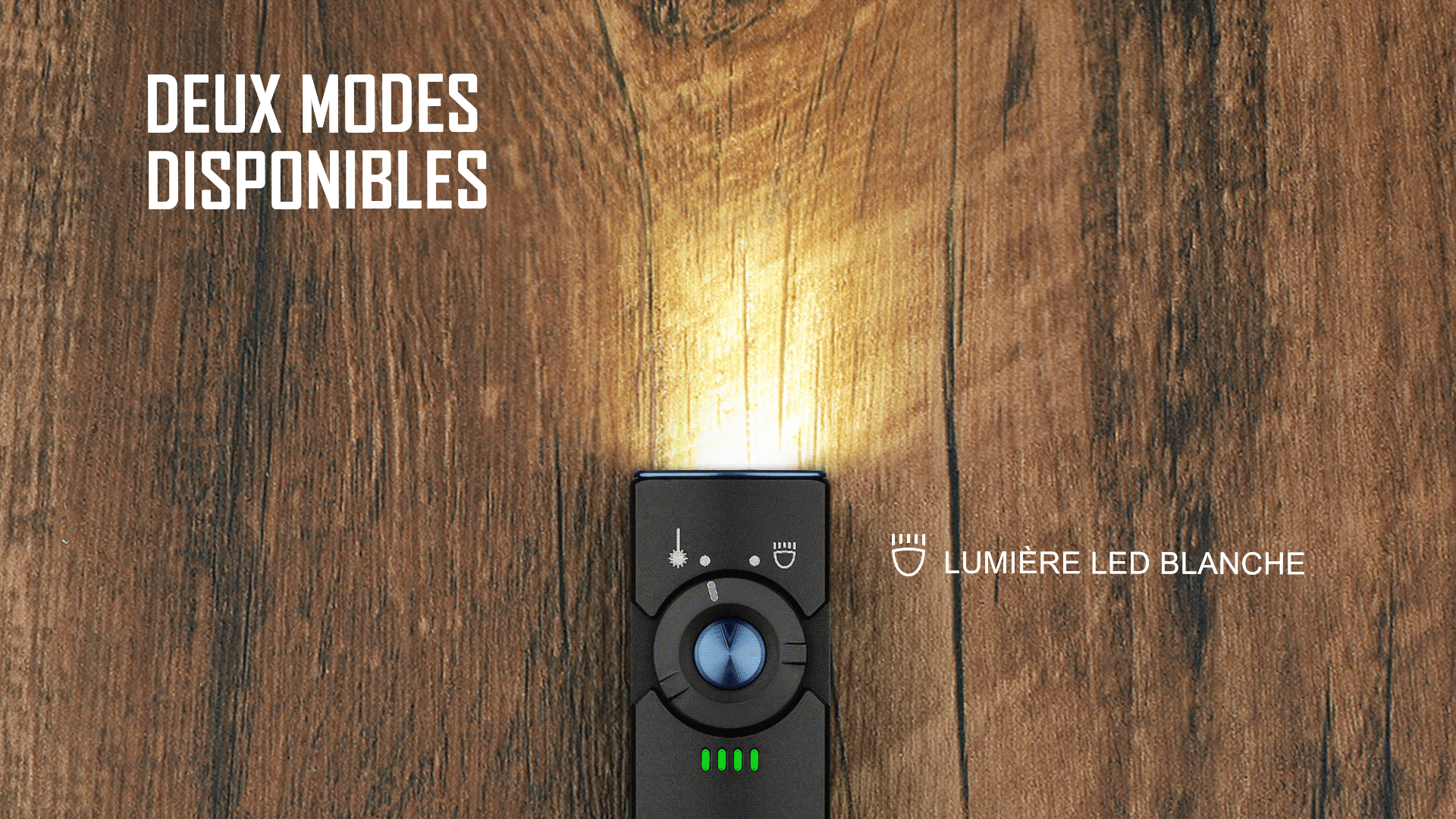 Le pointeur laser vert ajoute une touche polyvalente, idéal pour des présentations ou pour divertir vos animaux de compagnie. Son interrupteur ingénieux, combinant un bouton central et un sélecteur, allie ergonomie et esthétique.