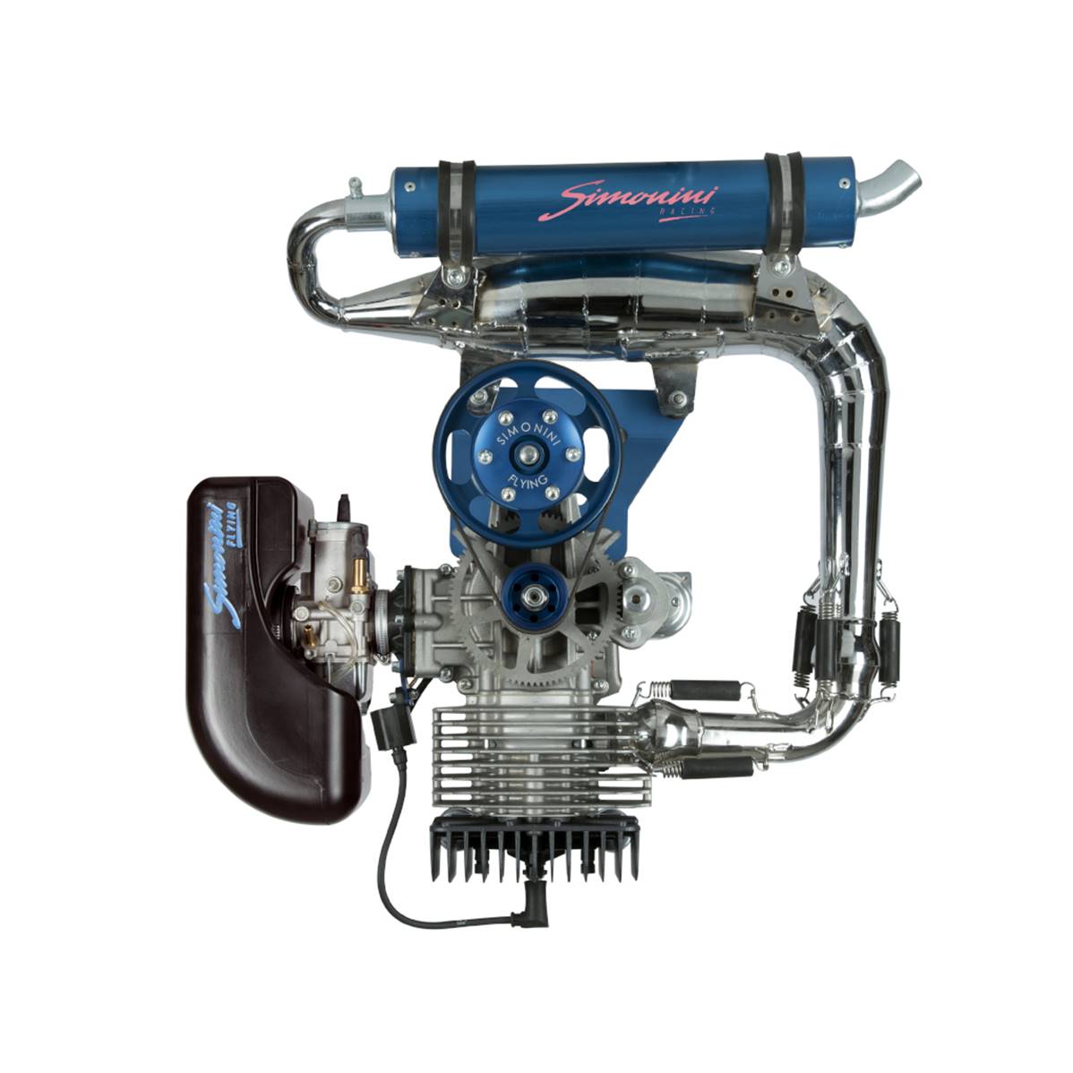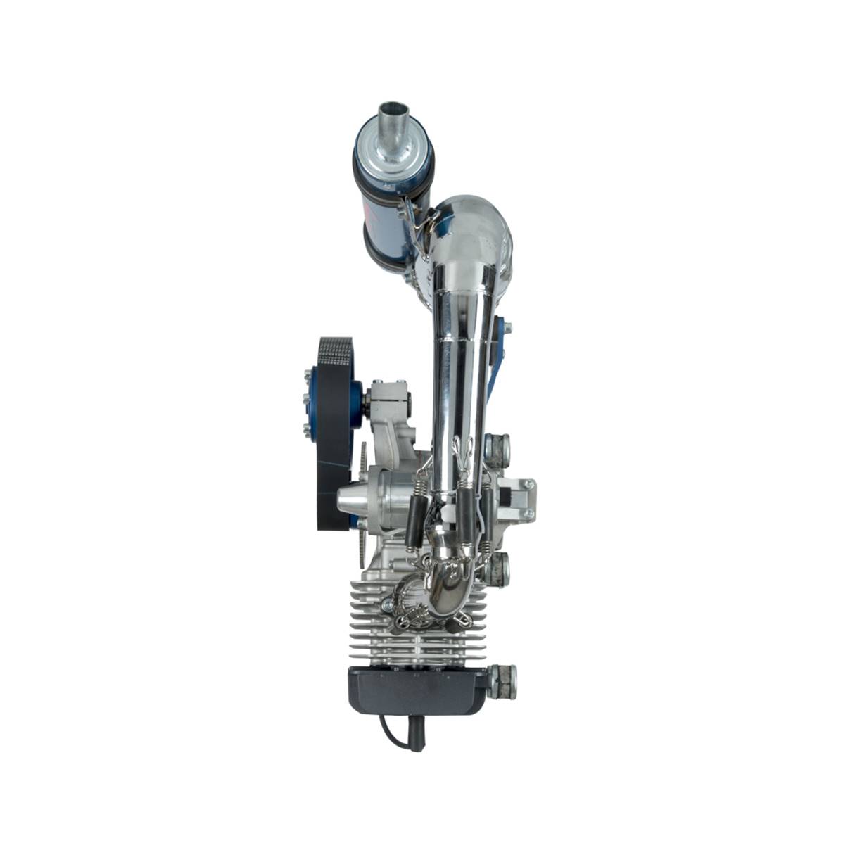 Moteur SIMONINI MINI3 Moteur Simonini MINI 3, comprenant le pot d'échappement, le carburateur BING 36, le filtre à air, le démarreur électrique, et le réducteur 1/276.