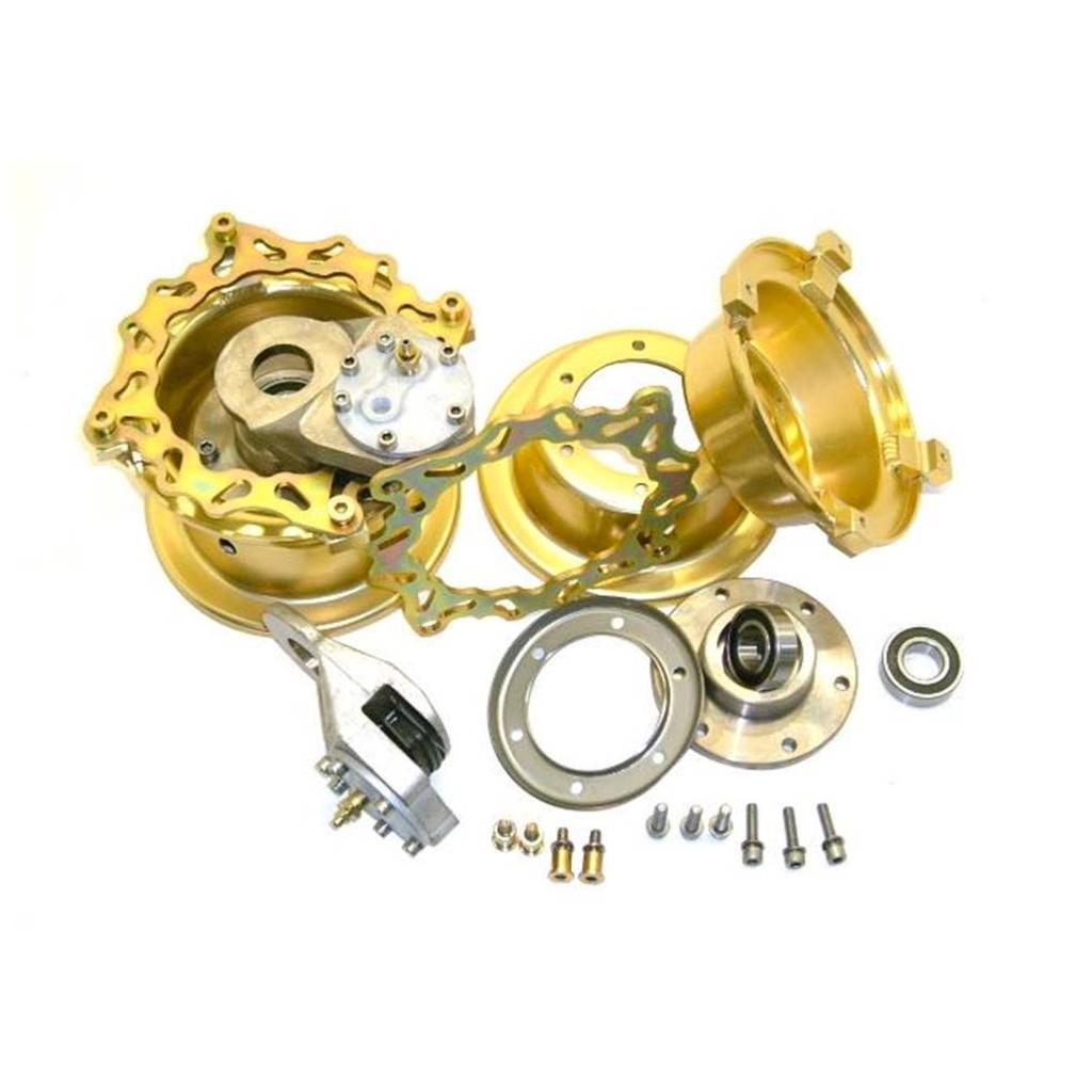 Paire de jante 5 en alliage alu 6082 estampé et recuit, à frein hydraulique DOT4 flottant pour ULM et aéronef léger, charge statique par roue de 250 kg (testé à 1052 kg avec légère déformation élastique). Axe Ø 20 mm