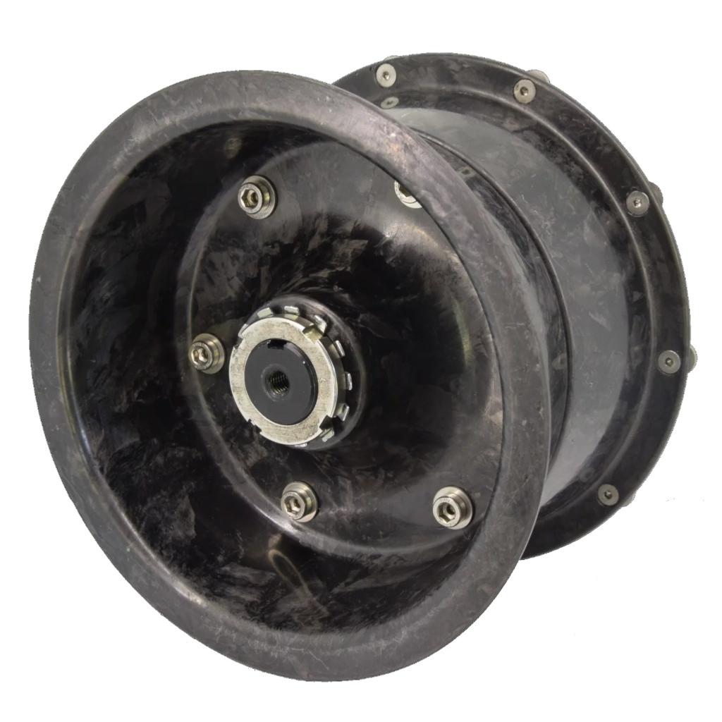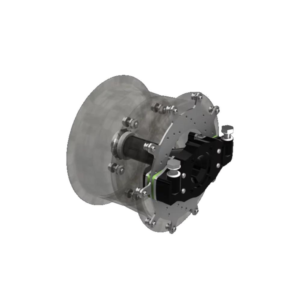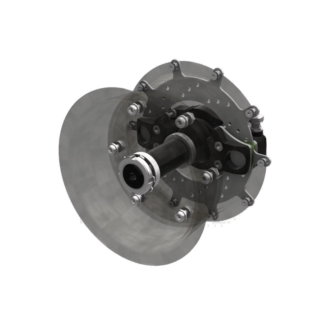 Pour compléter la jante en carbone, un moyeu associé à un système de freinage a été conçu et optimisé pour nos petits aéronefs. Les pièces immobiles sont réalisées en aluminium aéronautique 7075 T6 avec une finition anodisée pour une protection optimale contre l’oxydation.