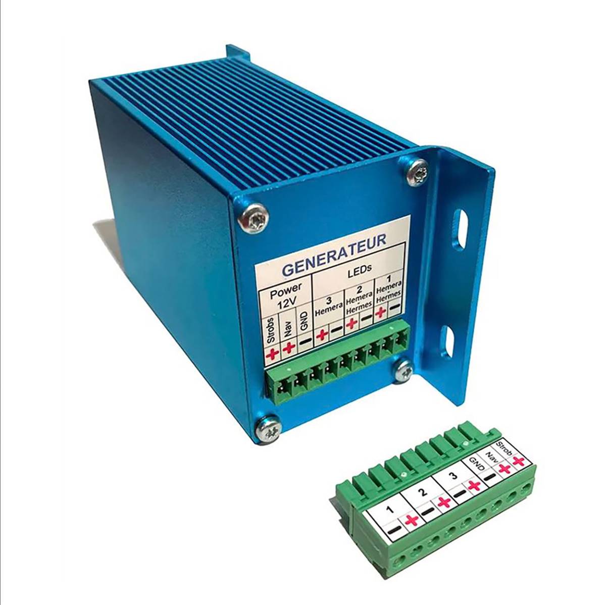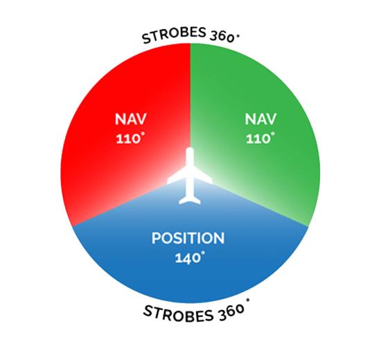HERMES intègre les fonctions synchronisées et dissociables : feux de navigation - feux de position et feux à éclats “stroboscope” vous assurant une totale sécurité en vol.