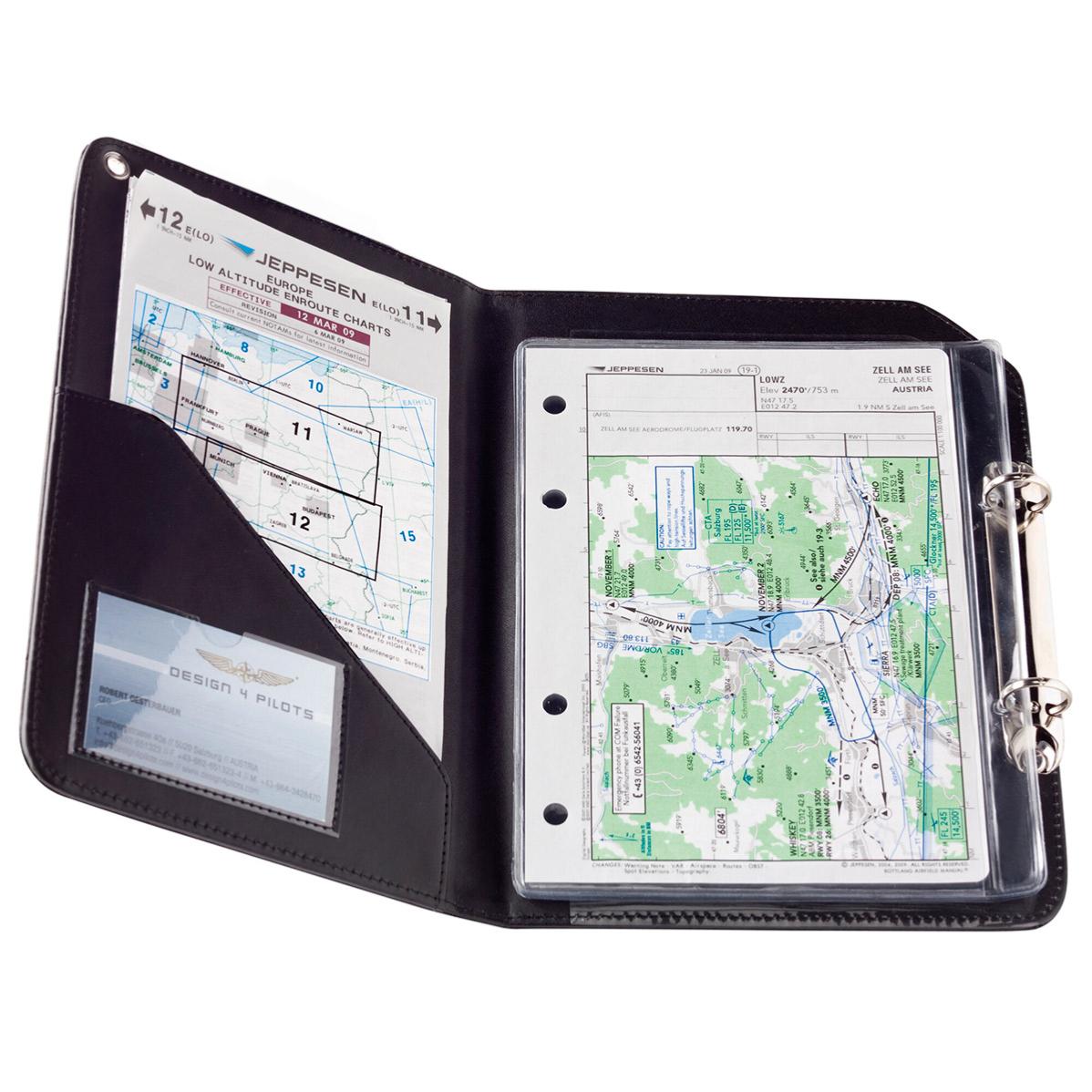 Elégante et de très haute qualité, cette planchette de vol VD-PRO est en cuir (respectueux de l'environnement), avec de larges bandes Velcro de fixation, clips de maintien, deux porte-plumes élastiques et un emplacement pour un chronomètre.Format A5