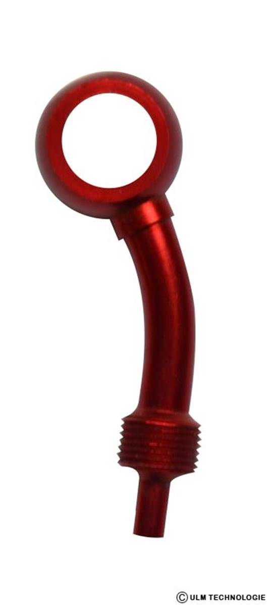 Raccord banjo à 30° axial en aluminium anodisé.