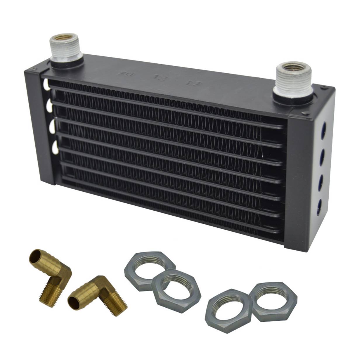 Radiateur d'huile adaptable pour moteur Rotax. Entre axe des sorties : 175 mm.