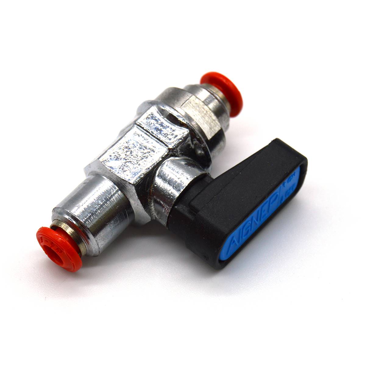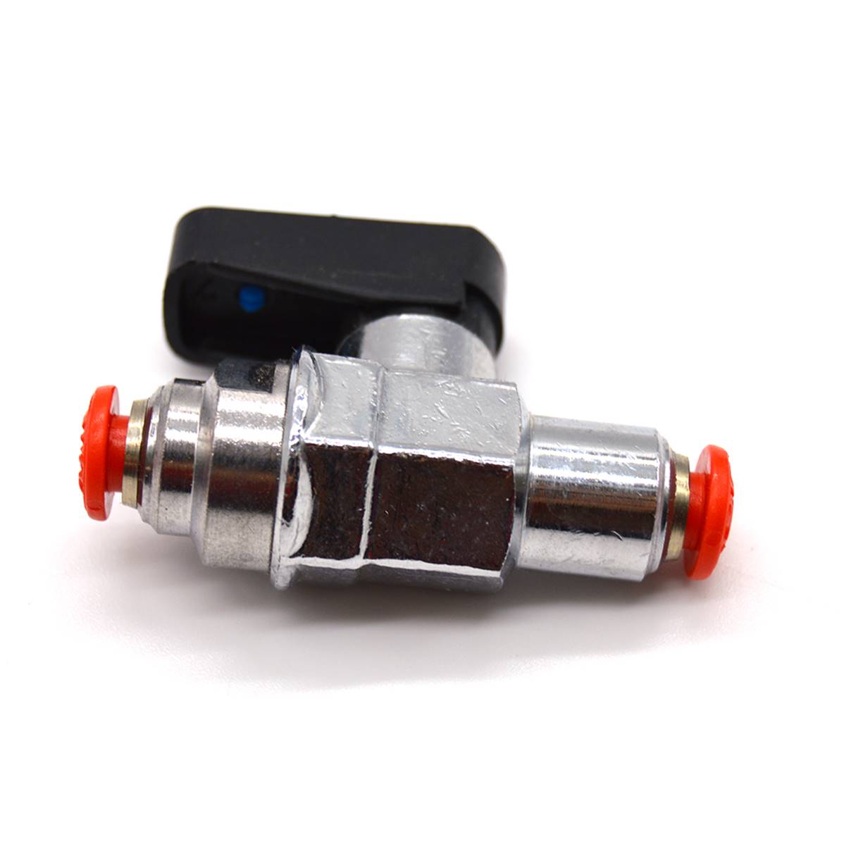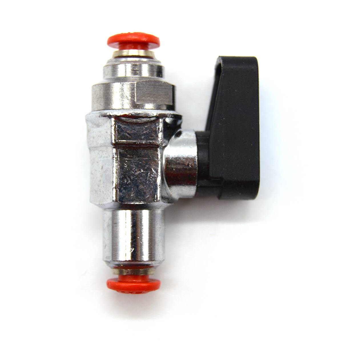 Robinet Laiton nickelé à mettre en ligne, les sorties sont femelles pour tube de Rilsan 6 mm.Poids : 39 gr