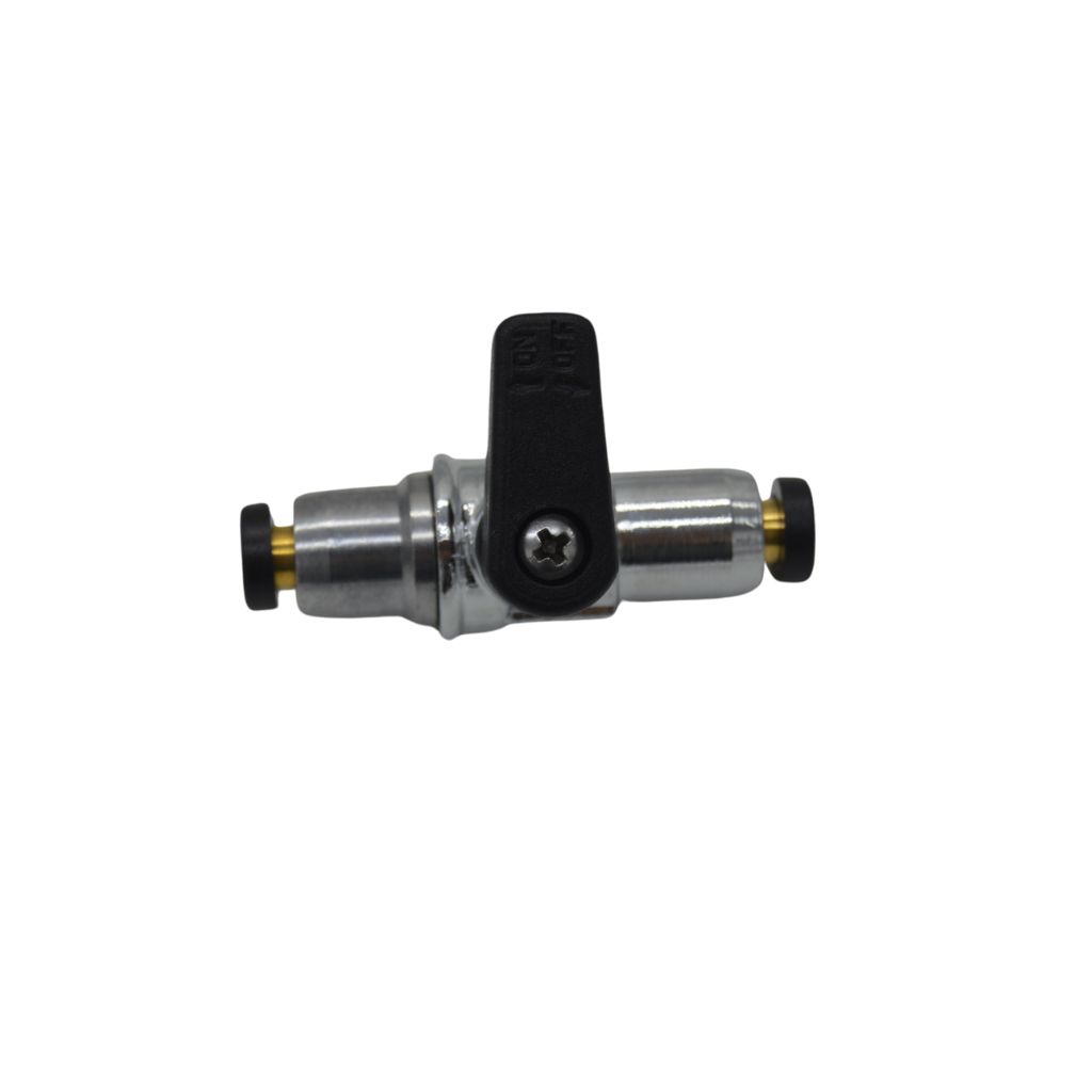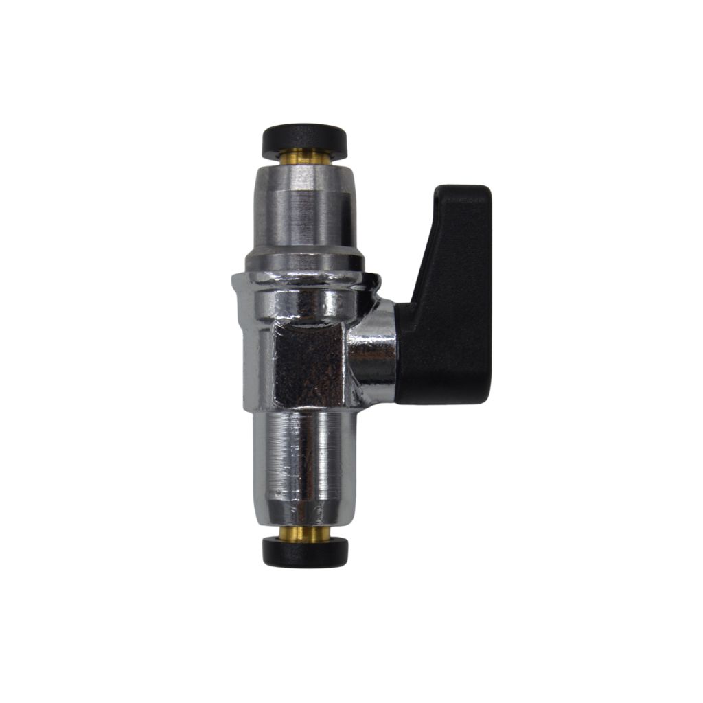 Robinet Laiton nickelé à mettre en ligne, les sorties sont femelles pour tube de Rilsan 4 mm.Poids : 39 gr