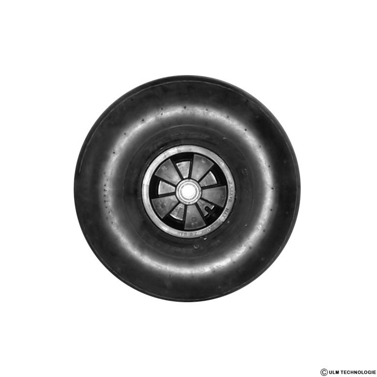 Roue plastique sans frein 21x12.00-8 (diamètre 560 mm et 264 mm de large) avec roulement de 20 mm . Poids : 5,800 kg