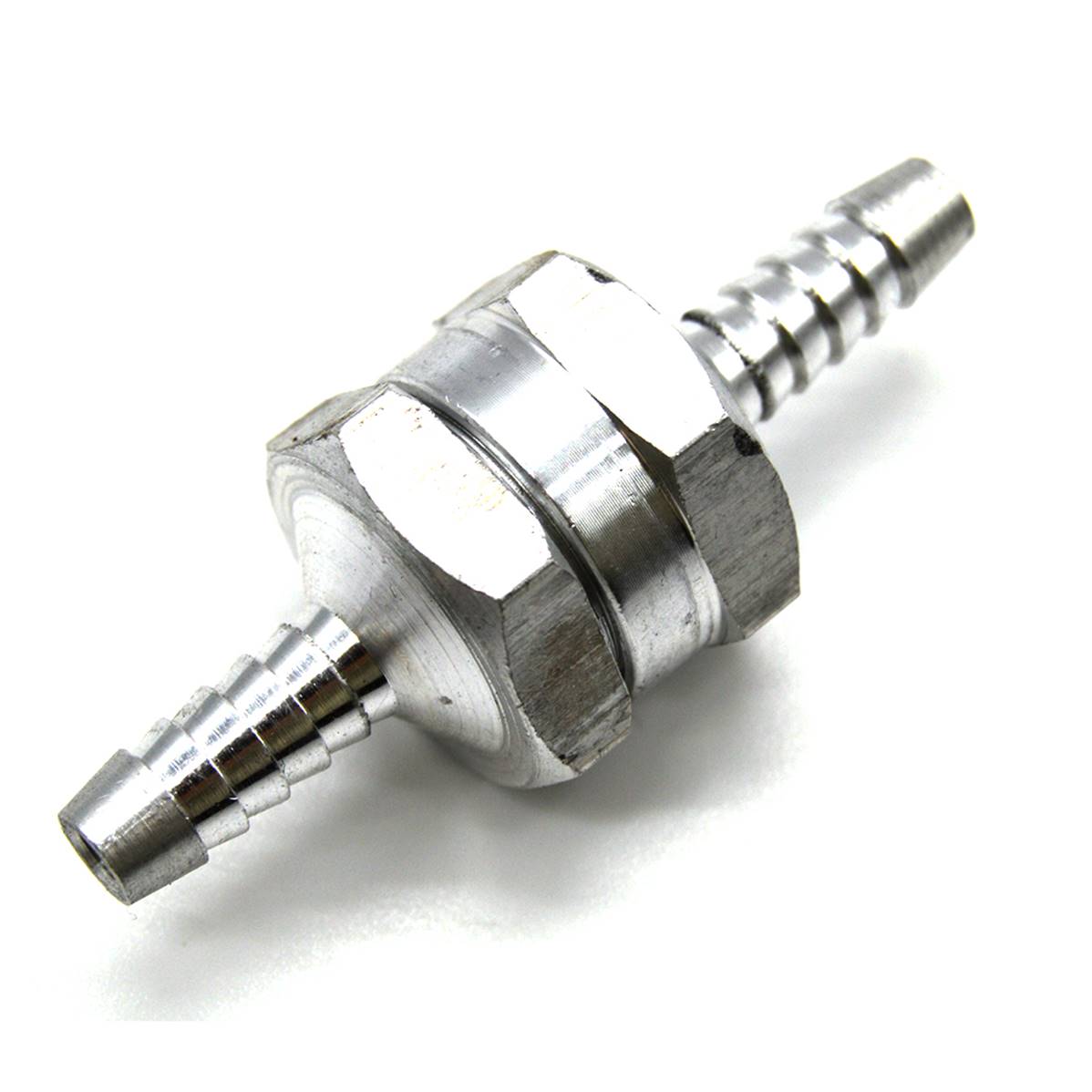 Valve anti-retour, diamètre 6 mm, en aluminium, évite de désamorcer le circuit essence. Dans le cas de deux réservoirs d'aile, l'anti-retour évite que l'un ne se vide dans l'autre.Poids : 30 g.